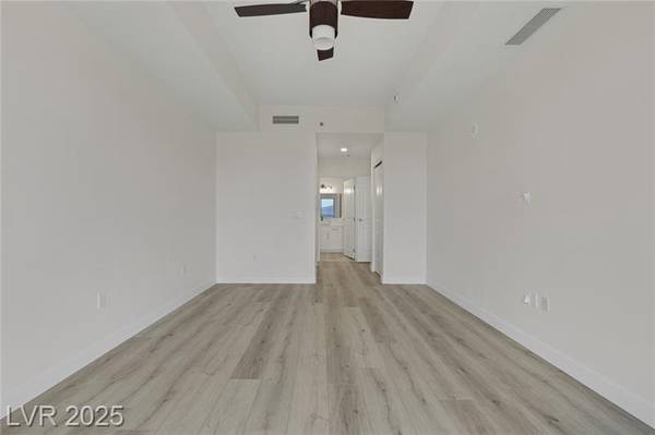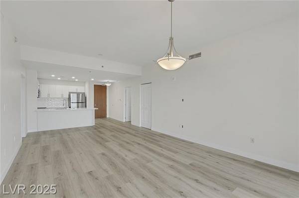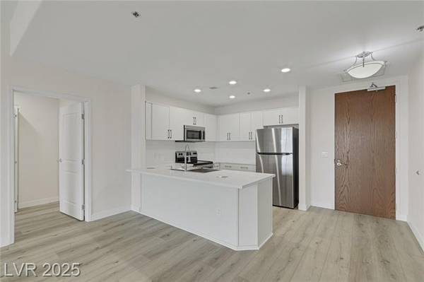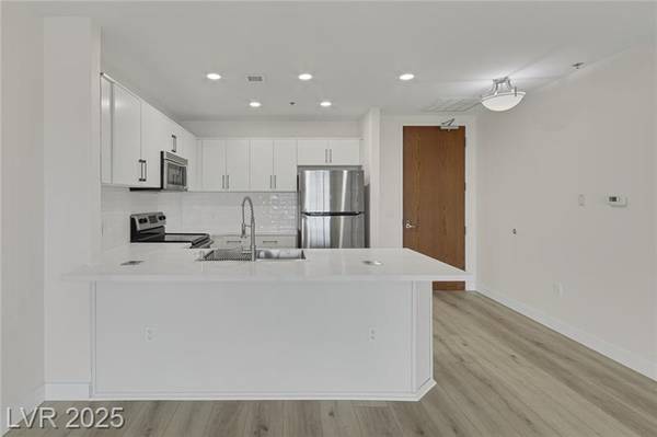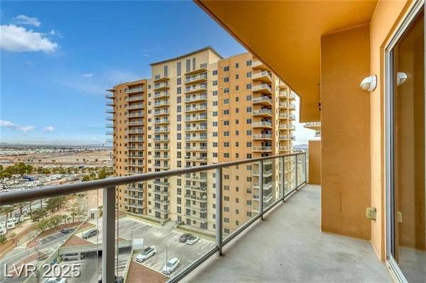Fabulous recently remodeled 2-bedroom/2-bath high-rise condo for sale in popular high-rise tower just 5-7 minutes south of the Strip and walking distance to the upcoming train station. Nearly 1,400 Sqft.on the lucky 13th floor. Upgrades include laminate flooring, neutral colors, custom light fixtures and more! Long balcony featuring pool, city and mountain VIEWS! Chefs dream kitchen with breakfast bar, upgraded cabinetry, new Quartz countertops, designer Subway-tile backsplash and stainless steel appliances. Dual master-style bedroom setup with modern laminate flooring, walk-in closets and on-suite bathrooms with tub/shower combos and new vanities, lights and mirrors. Laundry room with washer/dryer. Unit comes with 2 assigned parking spaces in underground garage and a bonus storage unit.