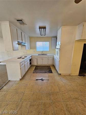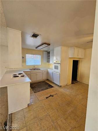 Easy fixer upper for sale in Spring Valley - just minutes from LV Strip, Downtown Vegas, I-15 freeway, Palace Station and shopping centers. Nearly 1,600 Sqft with 3 bedrooms, 2 full bathrooms and a converted garage. Spacious open floor plan with living and dining rooms. Large kitchen with breakfast bar, lots of cabinets and white appliances. 3 bedrooms with closet space. 2 full bathrooms - one with tub/shower combo and second with shower. Garage has been converted to laundry room and storage. Good sized backyard with desert landscaping and storage shed.