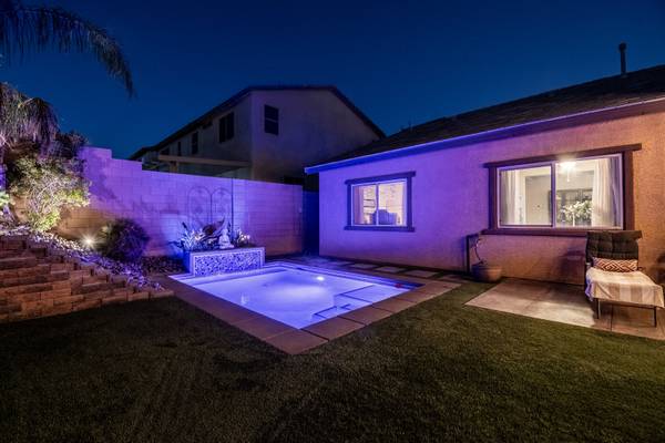 MOVE-IN READY! 1-story LivingSmart® eco-forward home by Pardee in Eldorado on a private, corner lot with designer touches throughout! Gated, 3b/2ba/2car with pool in a resort style backyard! * Chef style kitchen: Large granite island, 42" espresso cabinets, stainless appliances, gas range, exterior-vented hood. * Baths with quartz counters, upgraded sinks, custom tile, fully built-out primary closet. * Interior upgrades include rich laminate wood-look floors, crown molding, faux brick accent wall, custom media built-ins, surround sound wiring, smart thermostats, LED lighting, ceiling fans. Energy-efficient construction: Low-E windows, Radiant barrier roof sheathing, R-38/49 attic insulation, insulated flex ducting, and 225-amp service. Backyard offers a true resort retreat: sparkling gunite pool w/waterfall, stone accents, turf, bistro lights, oversized covered patio with ceiling fans, stamped deck, dog run with faucet, multiple outlets for entertaining or holiday lights.* Come & see!