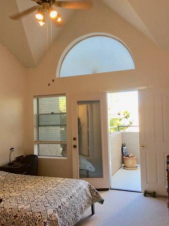 It is close to many convenient places: The community center is one block away, the public library is two blocks away, and Garrett Junior High School is directly across the street. The condo has two sizable storage rooms, which can be converted into two bedrooms, and 2 full bathrooms. There are two dedicated parking spots, one is covered. There is a swimming pool and jacuzzi for the community. The condo has a large balcony with a panoramic view. The neighborhood is relatively calm and removed from busy streets.