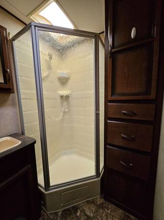 Large Bathroom with Radius Shower and Linen Closet with Drawers!