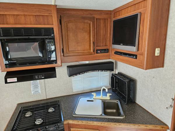 Kitchen has Full Size Gas/Elec Fridge, 3 Burner Cooktop with Range, Oven, Microwave, and Double Sink!