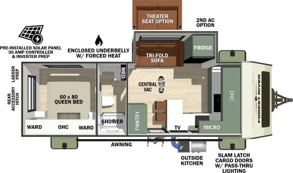 2026 No Bo 20.5 Front Kitchen that is $17,212 OFF MSRP! Comes with a One Year Warranty! On Demand Hot Water Heater! Enclosed Underbelly with Forced Heat, Radiant Foil Insulation, and 12V Tank Heaters! 200watt Solar Panel with Controller Keeps You Charged!