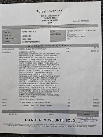 Comes with One Year Warranty from Forest River!