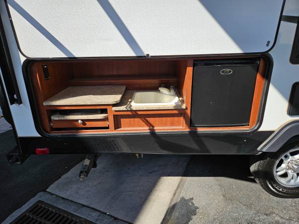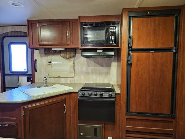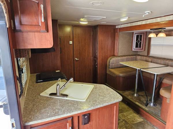 Everything Works! Mechanic Inspected and Ready to Camp! Huge Bathroom with Wardrobe Closets! Outside Kitchen Keeps Smells Outside! Half Ton Towable at Only 5,140 Pounds! Electric Slide Out Holds U-Shaped Dinette that Converts to Sleeping Space!