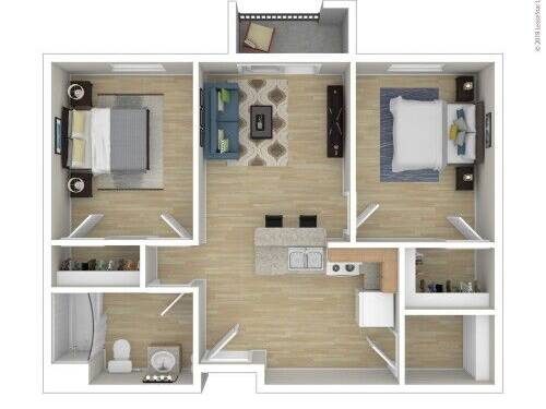 2 bedroom 1 bath 747Sq.Ft $1,312