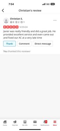 1- I’m available 24hrs 7 days a week for repair your air conditioning and heating all models