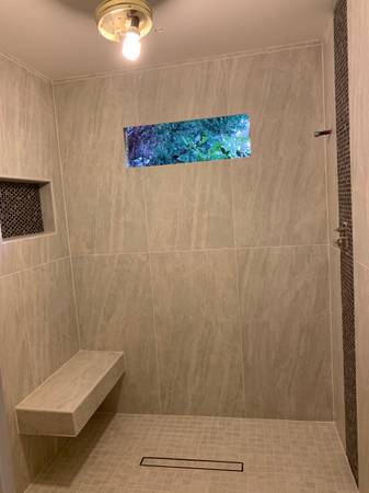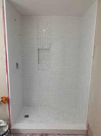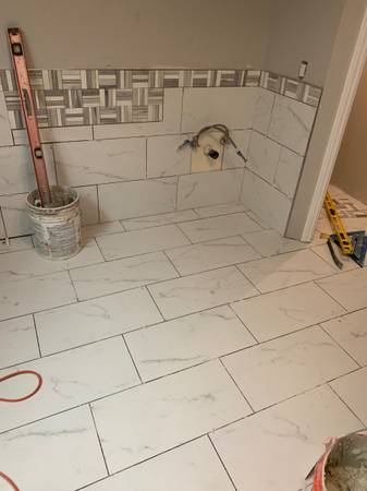 TILE INSTALLER AVAILABLE EXPERIENCE INSTALLING TILE SHOWER SLOPING AND WATERPROOF BATHROOMS WALLS SHOWERS BACKSPLASH FIRE PLACES DEMO AVAILABLE BASEBOARD INSTALLING CALL OR TEXT FREE ESTIMATES