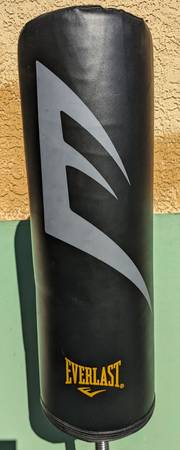 This is a kicking and punching bag on spring pole good for developing coordination speed, accuracy against bag that moves on spring, it is not a heavy bag that attaches to ceiling rafter and hangs down from ceiling those bags are much heavier and require attachment to ceiling rafter or pole support frame.