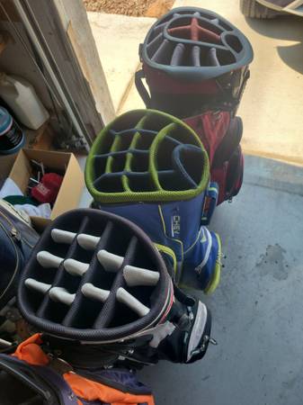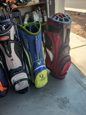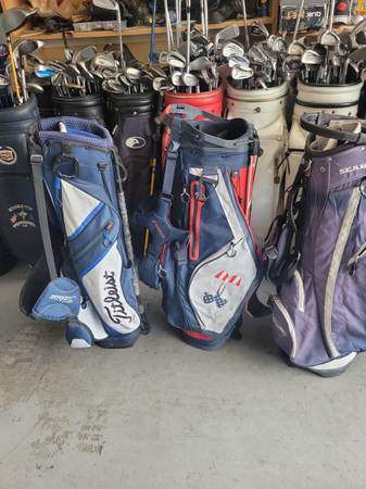 Used golf bags for sale, stand-up, cart bag, and some tour leather bags, and prices range from 30.00 up to 200.00 Most of them are used, but everything works, no holes or tears, normal wear and...