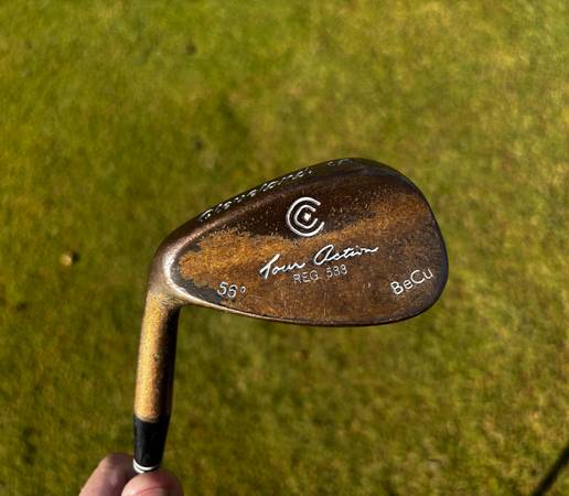 A nice LEFT HANDED CLEVELAND BECU TOUR ACTION REG. 588 56* SAND WEDGE. Comes with the original True Temper Dynamic Gold wedge flex steel shaft. The club head shows normal wear. Scotty Cameron, Ping,...