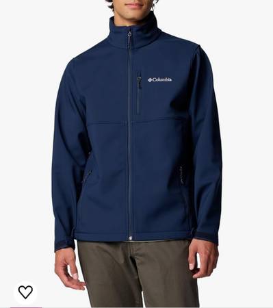 Men's Columbia Ascender soft shell, front-zip Jacket in Collegiate Navy color. Water-resistant.