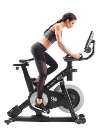 The NordicTrack S10i Commercial Studio Bike is one impressive machine. With a large, full-color, 10" touch-screen, you can take daily fitness classes right from the console of your bike. You can stream high-energy studio workouts with trainers who control your bike’s incline, decline and resistance in real-time.