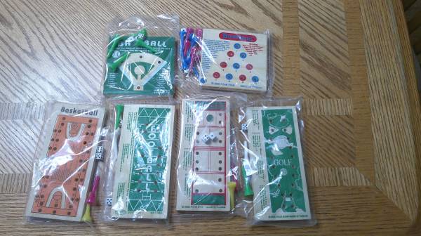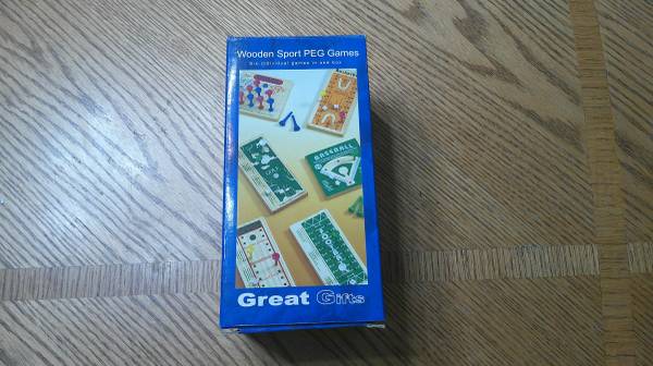 New in box-6 wooden sport peg games in 1 box. Includes baseball, basketball, bowling, golf, football, and tennis. Call or text Barbara @