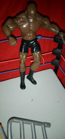 Pre-owned Wrestler Mania XVII Wrestling Ring. Bonus-Will include 4 Action Figure Wrestlers (6in tall) and Props!