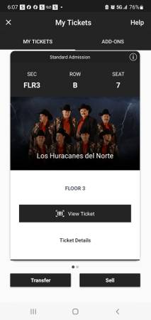 2 tickets for the Hurricanes del Norte for this Saturday, Oct 25th floor seats. $200, for both floor seats. Paid $250 but cant go now. Ticket are through ticket master.