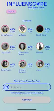 Weβre teaming up with IG influencers to spread the word about INFLUENSCORE β the new app that gives you a FREE influencer score based on your engagement and followers.