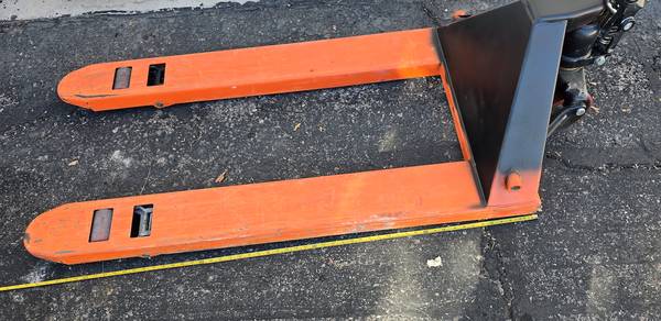 2.5 Ton pallet jack - works good. see photos (measurements in photos) Call or text anytime, thanks, bret 31O.913.711nine