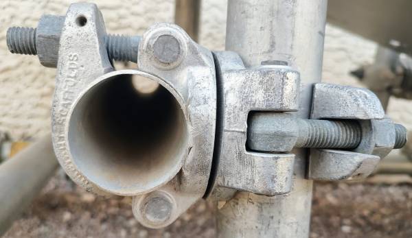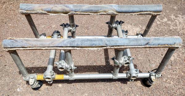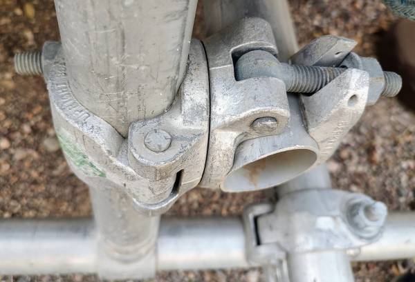 EIGHT - 2 x 2 inch, aluminum swivel clamps, plus FOUR - 4 x 1 inch swivel castors, on a home-made jet ski stand. Items made by Up-Right Scaffolds. Unbolt the clamps and wheels then recycle the aluminum tubing if not needed. As pictured.