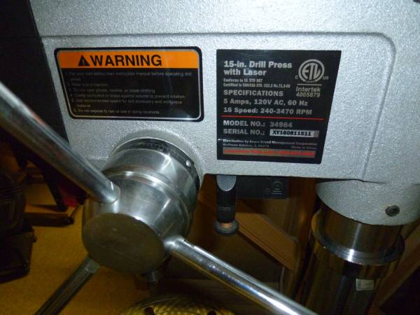 15" craftsman floor drill press 16 speed 3/4 hp, work light and laser align. in perfect condition 400.00. please leave a phone and name. i will call as soon as i can, thanks.