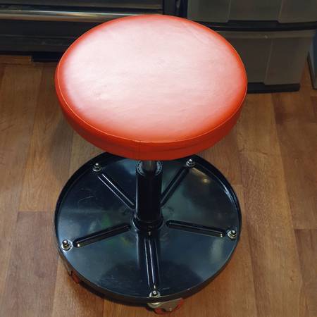 The stool works perfectly and looks almost like new, with only very minor scuffs from light use. Great for garages, workshops, detailing, or hobby spaces.