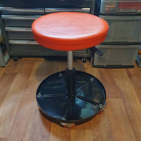 Selling a sturdy 18" adjustable height shop stool in excellent condition, very lightly used.