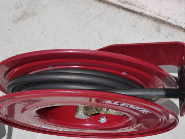 Alemite Air- Motor Oil Meter and Retractable Hose reel 7335B. Set up for motor oil but can be used with air too. This runs around $800 plus with the oil hose and meter when new. reel is in near new...