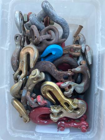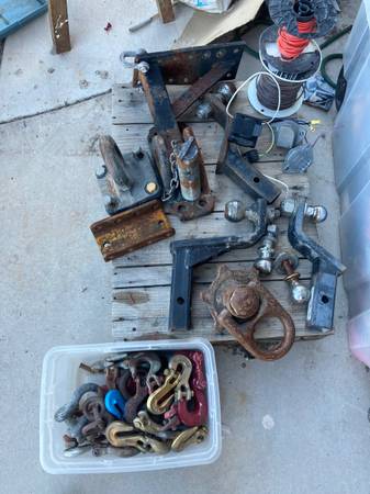 MISC. TRAILER PARTS, GOOD STUFF, CHAIN-CARGO HOOKS. FIRST $100 BILL GETS IT ALL.