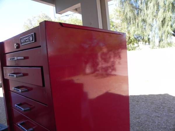 Vintage Matco MB908 Imperial 8 Drawer Side Cabinet Ohio Red 2 Keys (Super Rare). Vintage Matco MB908 Imperial 8 Drawer Side Cabinet Made In Stow,Ohio USA Red 2 Keys (Super Rare Unit). Unit Measures 18-1/2'' Wide x 18-1/2'' Deep x 34-1/2'' High. Everything locks up good and tight. All drawers slide nicely. Unit may have cosmetic blemishes from age or use but looks real good. Works great for its age. All drawers are smooth and work perfect. Locks up good and tight. Unit comes with 2 keys. I have the metal plate to cover the hole for the top back. Previous owner had it in one of the drawers. Please call if interested. Lots of scammers texting to reply to their email. lol thats not going to happen! Call Only if interested.