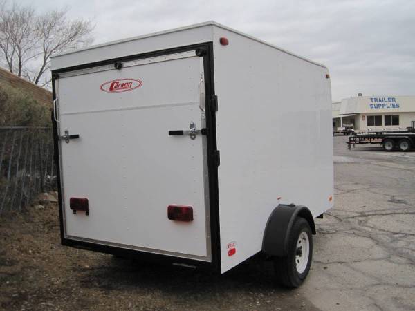 This 5x8 enclosed trailer has smooth skin, 3500. lb. axle, barn door, and a 2" coupler. Open Monday-Sunday 8am-5pm