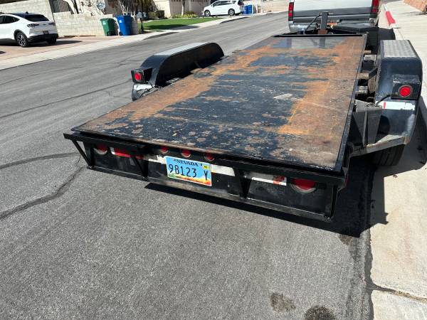 2000 16’ MGS utility trailer GVWR 19800lbs. Torsion axles. Electric brakes. Steel deck. Deck needs paint but is solid. Good condition. 12” channel framed. Hard to find trailer this size with such a high payload. Pintle hitch. Aluminum Ramps included 10k lbs capacity. Welded on trailer jacks (10k lb capacity) in rear for loading equipment. $4500. Without ramps $3900.