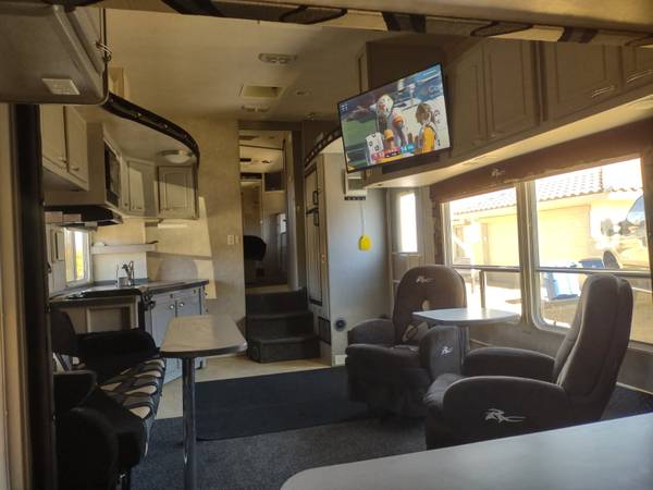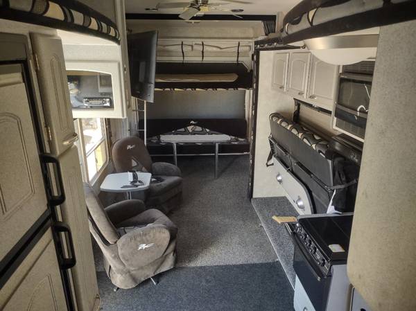 2 Rear electric queen bunks (lower folds into a double facing 2nd. couch)