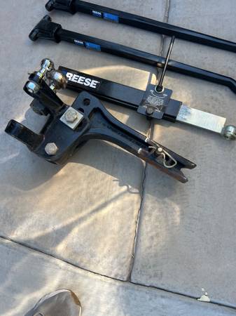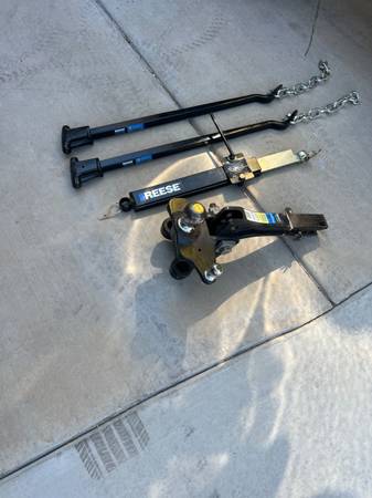 Weight distribution hitch with sway control, sold trailer and trailer side mounts stayed with trailer , parts are available at several places