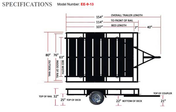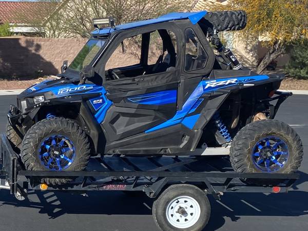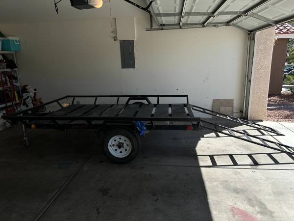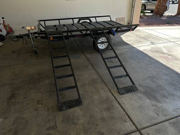 Trailer in great shape, tows easy. Can carry 2 ATV Quads or 1 2 door RZR SxS. Loads form the back or sides. Clean title No trades