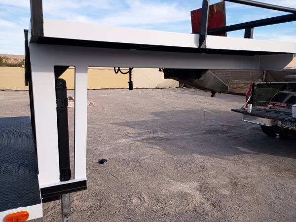 Fifth wheel trailer 27 ft long 10,000 lb capacity four sets of ramps brand new tires and rims two spare tires and rims tool boxes on both sides 4 ramps