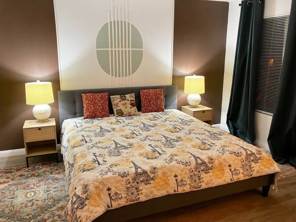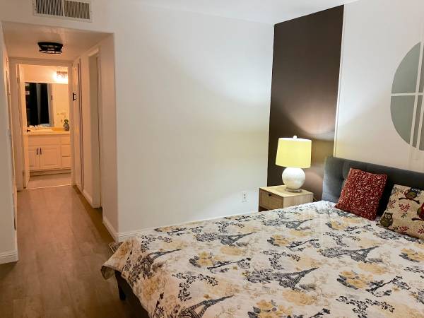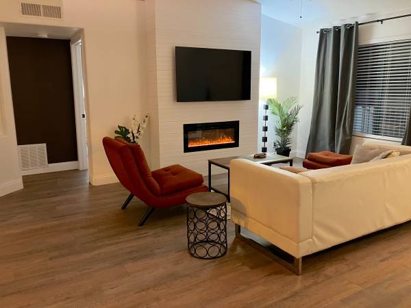 This modern, newly renovated 2BDR/2Bath condo has a spacious, open floor plan with a fireplace and contemporary furniture. Vaulted ceilings in open living area . Located on the second floor with private entrance. A large balcony offers peaceful views to the mountains. Both Bedrooms have a desk , access to your private Bath and a King or Queen bed.. Located in a safe and serene community. Walking distance to shopping. Min stay 31 days , longer term stay is welcome. Detached one car garage.The serene community is located in the nice and safe area in the heart of Green Valley with restaurants and shopping in walking distance . The sunset station casino is near by . The community is well kept and offers three pools. Located on the second floor the condo has a spacious floor plan with 2 large bedrooms and a balcony with view to the mountains inviting for outside dining. A detached garage is available for your car .There is ample guest parking . The condo was just remodeled and has new appliances. Washer and Dryer are inside. Large TV and modern , electric fireplace for colorful ambiance. We also have a baby bath /baby bed and high seat available if necessary.