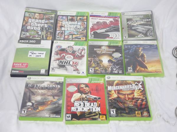 Xbox 360 Video Games - GTA IV, V, Red Dead Redemption, Halo 3, Need For Speed Most wanted, NFL Head Coach 09 2009, NHL 14, Moratl Combat vs. DC, IL Sturmovik Birds of Prey, Mercenaries 2