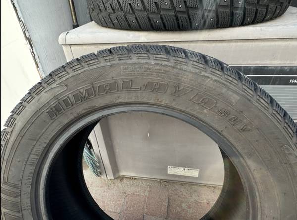 4 Snow Tires 255/55R18 studded 109T XL. Federal Himalaya SUV. 80% tread, rubber in good condition no dry rot, stored indoors when not used. Studs can be removed.
