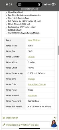 Gear Off-Road Ratio Gloss Black 6-Lug Wheel 18 in with TOYO open county all terrain 265/70 TIRES!!